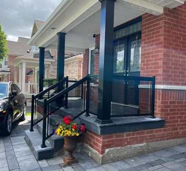 This project features aluminum and glass railings designed to complement a modern custom home. The sleek aluminum framing paired with clear glass panels provides an open, elegant look while maintaining safety and durability. It’s a perfect balance of contemporary design and lasting quality, enhancing both the home’s interior and exterior appeal.