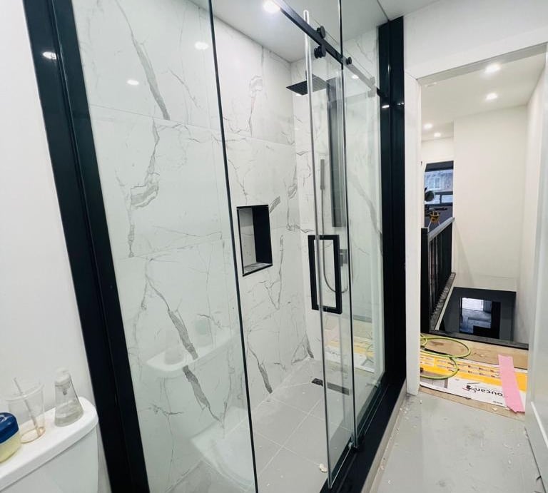 This Glass Shower and Tile Renovation transforms the bathroom into a modern, luxurious retreat. The project features a custom frameless glass shower enclosure paired with beautifully selected tiles that enhance both style and functionality. Every detail, from precise tile placement to the flawless glass installation, was executed with care, creating a clean, elegant, and durable space that elevates the overall look and feel of the bathroom.